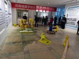 下午,在9号楼B座举行实验室安全事故应急演练。模拟发生“化学品废液泄露”后自救、查情、隔离,应急响应启动,应急安全处置,应急恢复4个阶段的具体演练过程,演练过程中,陈坚老师对每个阶段进行了详细的解释。