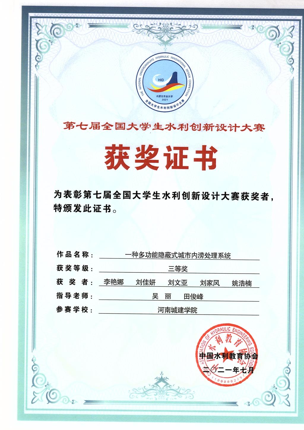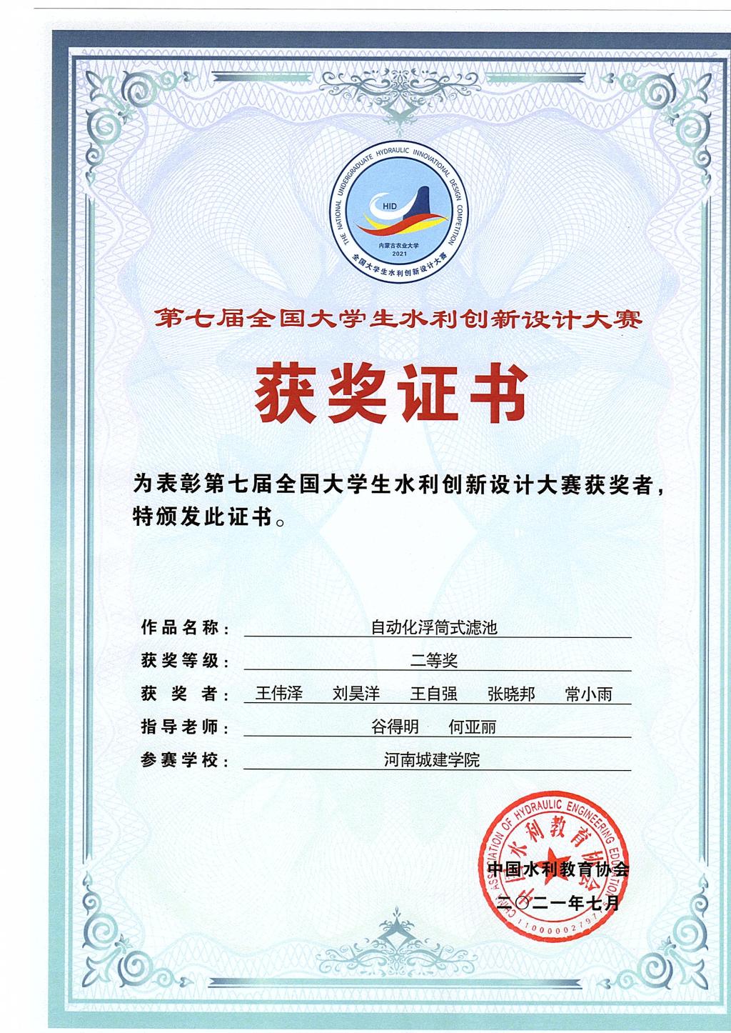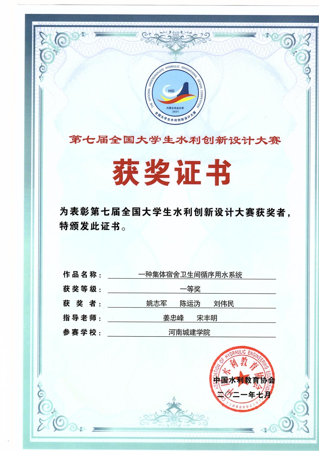(通讯员:田俊峰)近日,由中国水利教育协会主办的第七届全国老员工水利创新设计大赛决赛在呼和浩特市落下帷幕,公司beats365亚洲版官网选送的作品获得一、二、三等奖各一项。其中,由姜忠峰、宋丰明老师指导,员工姚志军、陈运沩、刘伟民的作品《一种集体宿舍卫生间循序用水系统》获得一等奖,谷得明、何亚丽老师指导,员工王伟泽、刘昊洋、王自强、张晓邦、常小雨的作品《自动化浮筒式滤池》获得二等奖,吴丽、田俊峰老师指导,员工李艳娜、刘佳妍、刘文亚、刘家风、姚浩楠的作品《一种多功能隐蔽式城市内涝处理系统》获得三等奖。