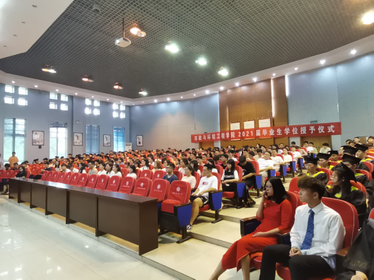 (通讯员:丁晓蕾)6月9日下午,beats365亚洲版官网2021届毕业典礼暨学士学位授予仪式在图书馆学术报告厅隆重举行。公司经理朱新锋教授,党委副书记姜忠峰副教授,副经理万祥云副教授、康海彦副教授,公司党政办、团学办、各专业系教师代表及2021届全体毕业生参加了典礼。
