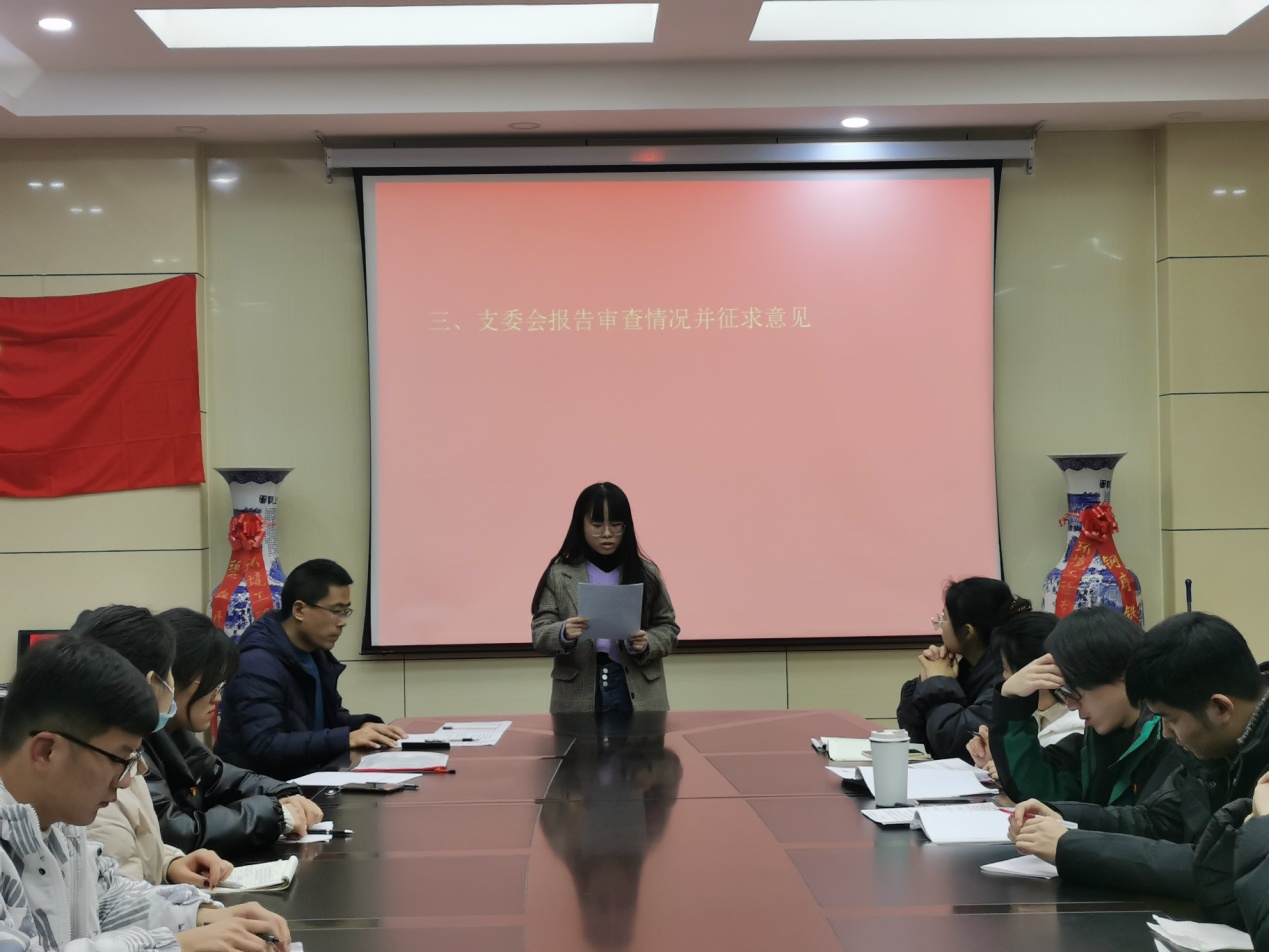 (通讯员 冯兴华)12月23日,员工第一党支部在9A315会议室召开党员大会,讨论研究张军政等10名同志入党和边一凡等9名同志转正问题。大会应到正式党员14人,实到13人,1人请假。会议由支部书记冯兴华主持。