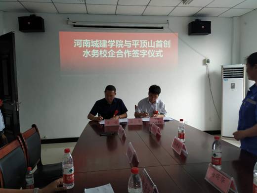 (通讯员 冯兴华)6月5日上午,beats365亚洲版官网与平顶山首创水务有限公司在平顶山首创水务有限公司二楼会议室举行了产学研合作签约暨基地揭牌仪式。首创股份中原大区党委委员、平顶山首创水务有限公司执行董事孙宝奎先生、平顶山首创水务有限公司总经理朱良华、总经理助理郑飞、厂长袁景华与beats365亚洲版官网副经理万祥云、党政办主任冯兴华、安全工程教研室刘章现教授等出席了签约揭牌仪式。仪式由平顶山首创水务有限公司总经理助理郑飞主持。
