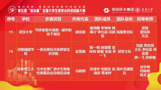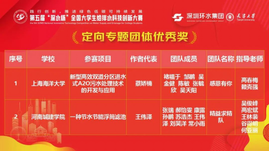 经过答辩和作品展示的综合角逐,3支队伍的参赛作品分别获得二等奖、三等奖和团体优秀奖。其中,由刘彪,高宏斌指导,员工吴慧南、靳一鸣、赵珈莹、梁婷婷的参赛作品《一体化原位水体修复生态浮船》获得二等奖,由吴俊峰,宋忠贤指导,员工刘子阳、王乾彬、李静、陈柄衡的参赛作品《一种用于供水系统中杀菌消毒的紫外线消毒装置》获得三等奖,由吴俊峰、高宏斌指导,员工王伟泽、张瑞、张瑞、郝怡雯、康露的参赛作品《一种节水节能浮筒滤池》获得团体优秀奖。