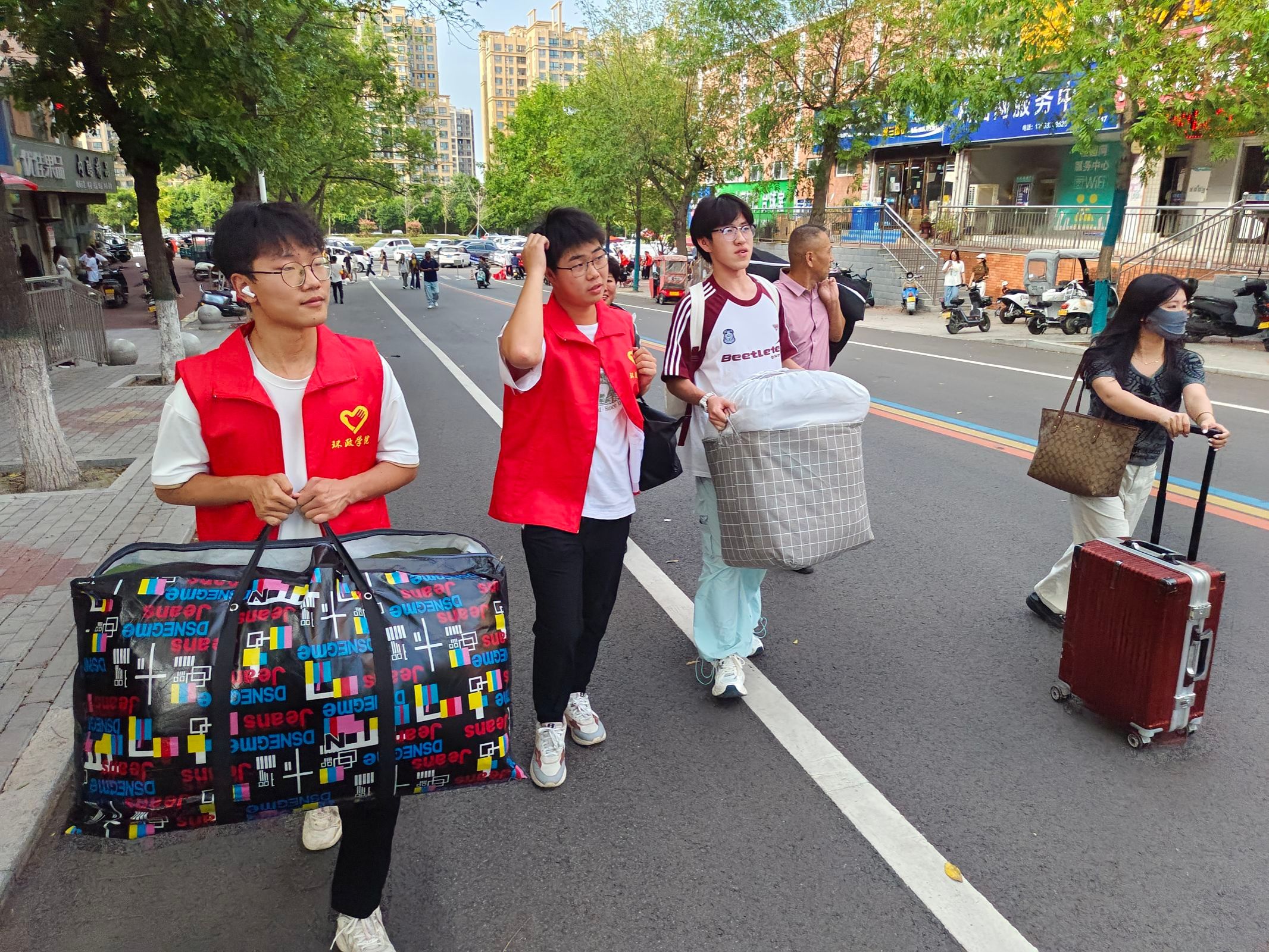 院领导曹恒慧、姜忠峰驻守迎新点现场指导工作、第一时间了解员工需要,及时协调解决同学们遇到的难题,亲切地同新生及家长交流,了解员工情况,鼓励同学们尽早适应老员工活。院领导班子成员及相关老师按照分工,分别在车站、城建大道、涂鸦墙、宿舍区等指导志愿者做好服务引导。迎新现场,人头攒动、秩序井然,员工志愿者们以满腔热情为新生提供全程引导和贴心服务,确保迎新工作顺利进行。