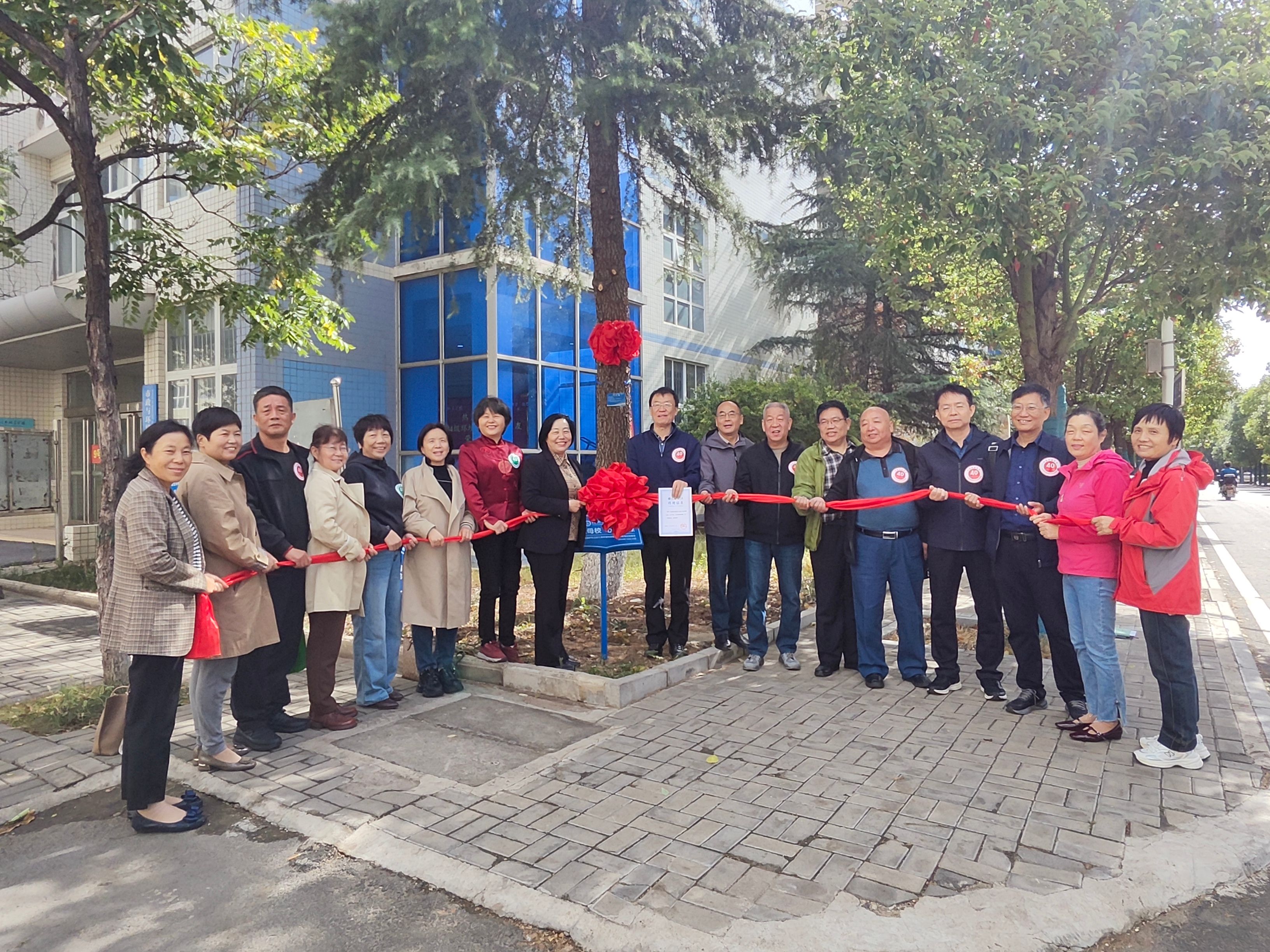 为表达对母校的感恩之情和纪念同学相识相知四十周年,1984级环境保护专业员工集体认养了公司一棵景观树。副董事长毛艳丽和员工代表赵殿生共同为景观树认养标识牌揭牌。