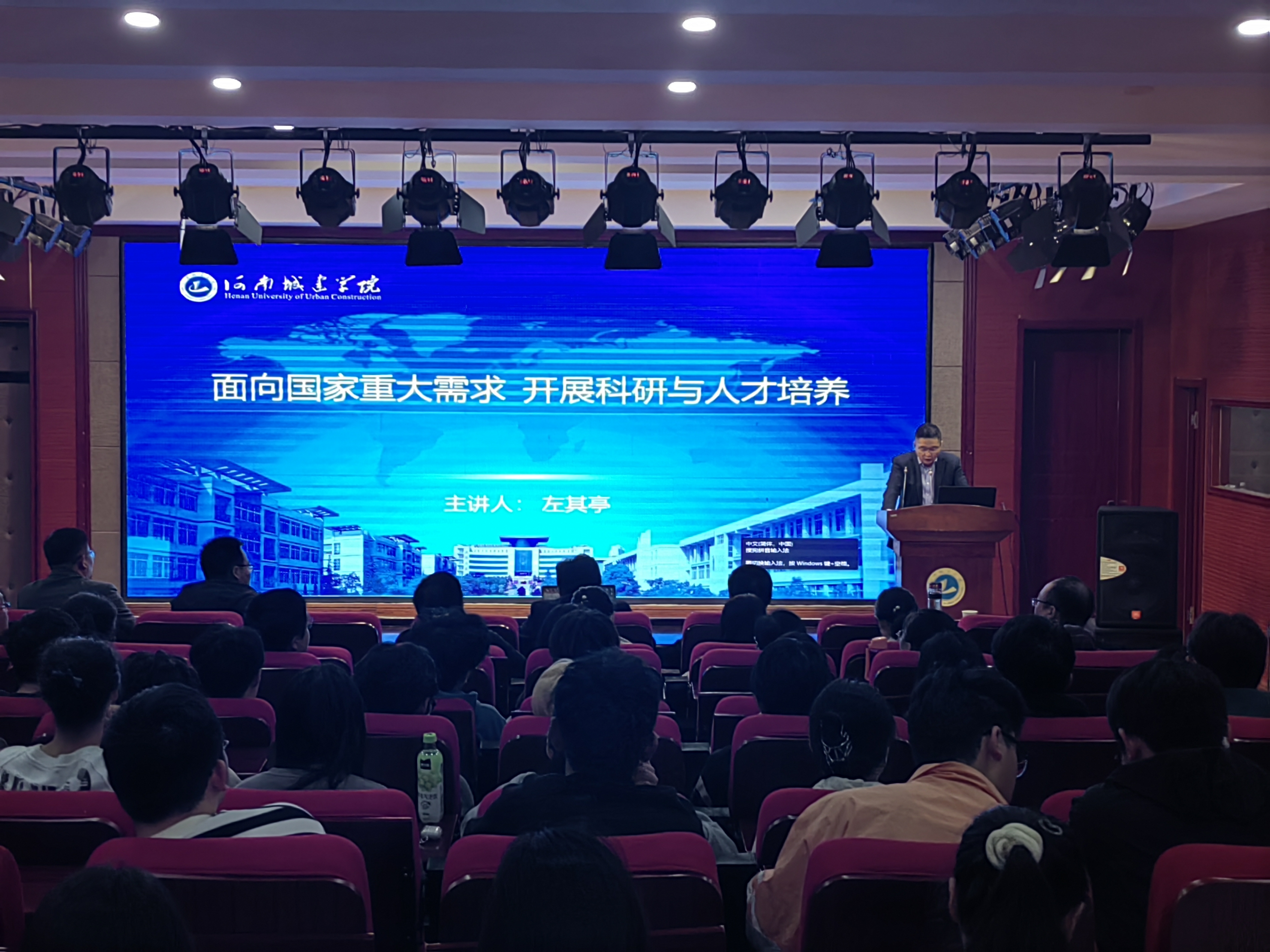 首先,姜忠峰代表公司对左其亭教授一行表示热烈欢迎,随后,左其亭教授以《面向国家重大需求开展科研与人才培养》为题做主题报告。左其亭教授从宏观角度介绍了十八大到二十大我国面临的重要发展机遇,结合黄河流域高质量发展、“一带一路”、“双碳”目标等国家战略布局看科技需求,阐述了在新质生产力背景下,如何将专业、学科、教学与当前形势相适应,并针对国家自然科学基金等科研选题进行了深入剖析,鼓励年轻教师和研究生要立足国家战略需求,拓宽研究思路,找准方向,把文章写在祖国的大地上。