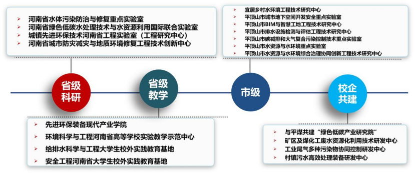 公司建有4个省级科研平台,4个省级教学平台,7个市级科研平台以及4个校企共建平台。水处理工程教师团队为第二批河南省高等公司黄大年式教师省级教学团队。
