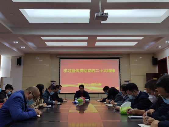 (通讯员:彭荣富)11月1日下午,副董事长陈松涛到beats365亚洲版官网宣讲党的二十大精神,公司副科级以上干部、教工党员及员工党员代表40余人聆听了宣讲会,宣讲会由公司党委书记曹恒慧主持。