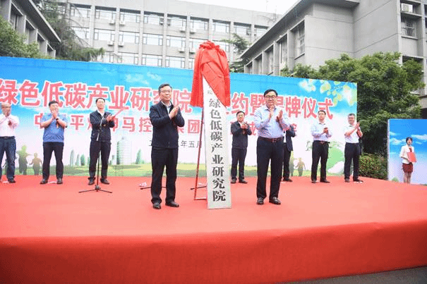 仪式上,公司董事长范晓伟和中国平煤神马集团常务副总经理张建国为“绿色低碳产业研究院”揭牌。