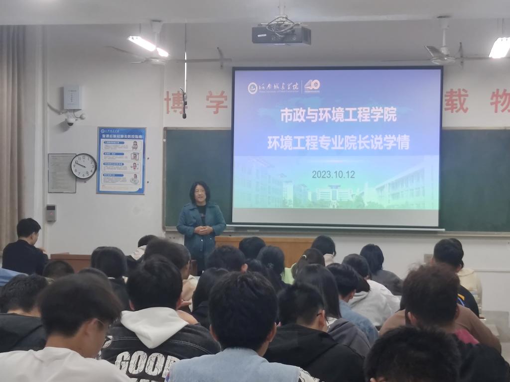 宋忠贤介绍了环境工程专业的培养目标、课程设置、学制学分、课程考核、学分绩点等方面内容,让新生对公司的教学工作有深入的了解,也让新生知晓了刻苦钻研专业知识、打牢专业基础的重要性。